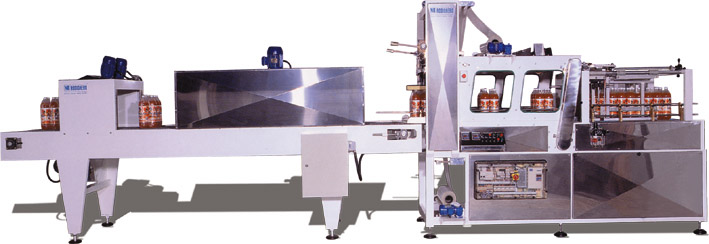 Máquina automática para empacotar no sistema de envolvimento de alta produção com capacidade para 1.800 pacotes/hora (30 pacotes/minuto), destinada a indústria de bebidas e alimentos.